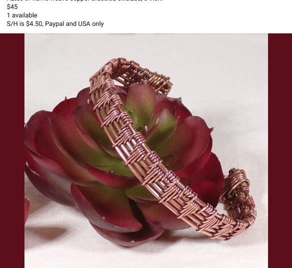 Copper Jewelry: High quality craftsmanship that is wonderful for gifts or treating yourself without breaking your budget. Every item is handmade with care by me, from bead and stone choices to the intricate weaving that makes these pieces unique and top of their class.